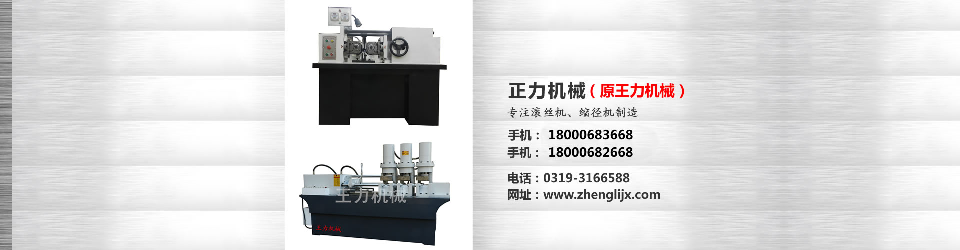 邢臺(tái)正力機(jī)械制造有限公司是國(guó)內(nèi)高端平價(jià)滾絲機(jī)專業(yè)化制造企業(yè)。 本公司是集研制、開發(fā) 、生產(chǎn)與銷售為一體的大型機(jī)械廠家,現(xiàn)主要產(chǎn)品有:滾絲機(jī),螺紋機(jī)床,縮經(jīng)機(jī),拔料機(jī),冷軋壓圓機(jī),雙組拉絲機(jī)等各種機(jī)械。地處燕趙大地南部邢臺(tái)市,是省級(jí)重合同、守信用、產(chǎn)品質(zhì)量穩(wěn)定型企業(yè),河北省消費(fèi)者協(xié)會(huì)信的過產(chǎn)品,產(chǎn)品暢銷全國(guó)各地,深受用戶的好評(píng)。          現(xiàn)擁有Z28-40、80、150、200、280、63型系列在五金建筑、汽摩配件、交通電力、標(biāo)準(zhǔn)件制作等高精度產(chǎn)品加工行業(yè)中,對(duì)高強(qiáng)度螺紋、網(wǎng)紋、花鍵、直斜紋、梯形螺紋、特殊軸類的滾軋加工有很強(qiáng)的優(yōu)越性,以高效、精密、快捷的工作原理深受廣大用戶的信賴。         專用的液壓縮徑機(jī)WL-25、36、48、60、型操作簡(jiǎn)便,適用范圍廣,生產(chǎn)效率高,使金屬擠壓快速成型,節(jié)約了原材料,提高了金屬密度和抗拉強(qiáng)度         本公司長(zhǎng)期供應(yīng)各種滾絲輪、縮徑機(jī)模具等各種配件。          產(chǎn)品暢銷河北,河南,山西,山東、遼寧、黑龍江、吉林、北京、天 津等省市自治區(qū)。我們不斷引進(jìn)國(guó)內(nèi)外先進(jìn)技術(shù),不斷優(yōu)化產(chǎn)品結(jié)構(gòu),精心鑄造產(chǎn)品質(zhì)量。王力品牌系列滾絲機(jī)、縮徑機(jī)、絲杠機(jī)是根據(jù)國(guó)內(nèi)的先進(jìn)機(jī)型加以改進(jìn),具有結(jié)構(gòu)設(shè)計(jì)科學(xué),結(jié)構(gòu)合理、能耗低、精度高、 使用壽命長(zhǎng)等優(yōu)點(diǎn)。         我們正被更多的朋友接受,認(rèn)可,因?yàn)槲覀冇谜嬲\(chéng)……